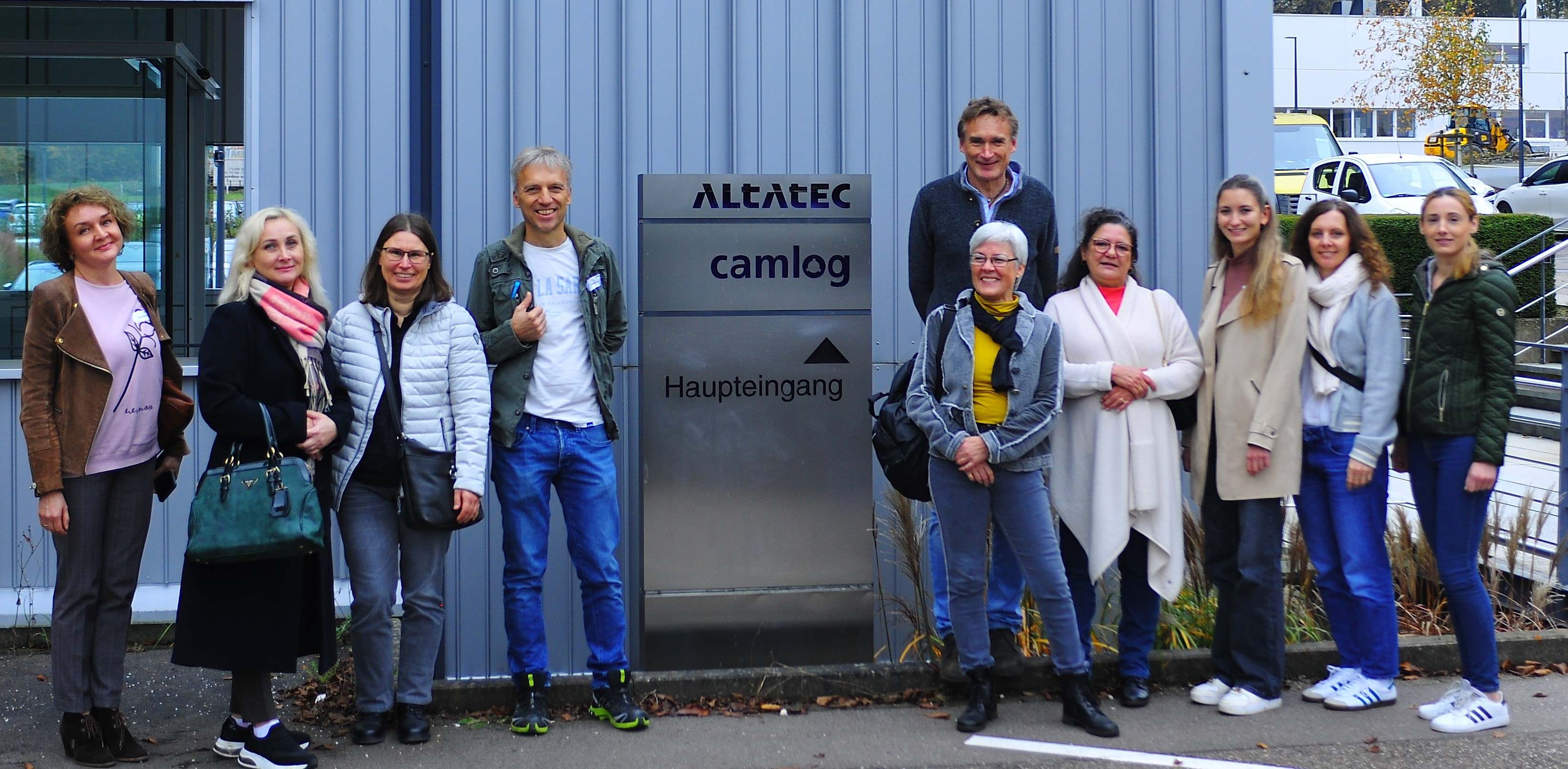 Unter dem Motto: „Ein Blick hinter die Kulissen“ sollte unser diesjähriger Betriebsausflug Spaß, Erfahrung und Fortbildung miteinander kombinieren. Eine Betriebsbesichtigung bei der Firma Camlog/Altatec in Wimsheim konnte dies alles vereinen. Nach einer kurzweiligen und kurvigen Fahrt durch den Schwarzwald wurden wir im Wimsheimer Betriebsgebäude herzlich begrüßt. Ein interessanter Vortrag über die Firmengeschichte, von der Herstellung der ersten Implantate bis hin zu einem Marktführer im Bereich Implantologie und Gewebsersatzmaterialien faszinierte alle Teilnehmer. Schon in der theoretischen Darstellung wurden wichtige Gesichtspunkte bei der Herstellung und dem Vertrieb der Produkte ins Bewusstsein gerückt, an die man beim Öffnen einer Implantatverpackung während einer Operation bei einem Patienten nicht zu denken vermag. Bei der Besichtigung der Produktions- und Verpackungsstätten in absolut sterilen Räumen wurde allen Teilnehmern der Riesenaufwand bei der Produktion von Medizinprodukten vergegenwärtigt. Im Anschluss konnten im mondänen Vertriebsgebäude Anliegen und Anregungen von uns als Implantatanwender vorgebracht und diskutiert werden. Ein gemeinsames und vor allem hervorragendes Essen in dem mehrfach ausgezeichneten Restaurant „Ochsen Post“ in Tiefenbronn vollendete diesen informativen Beriebsausflug.